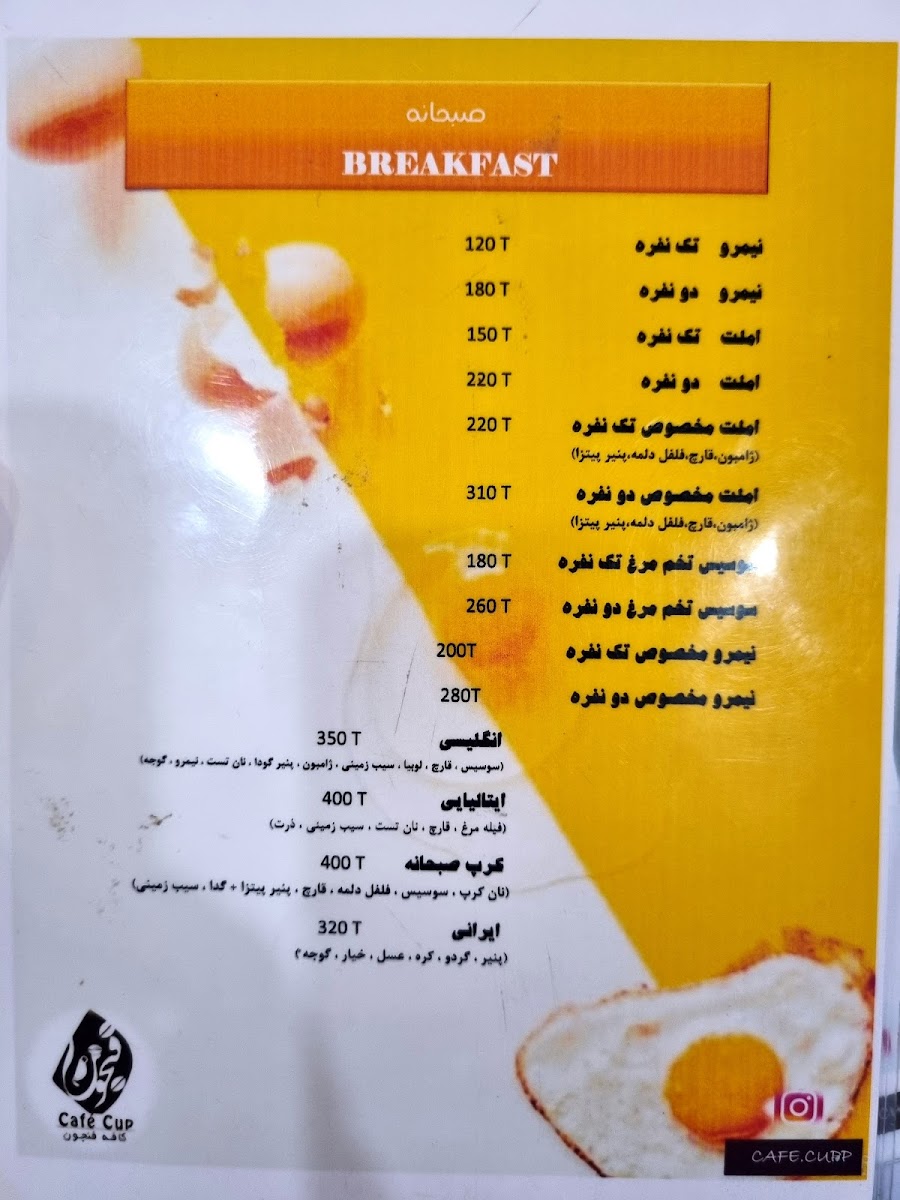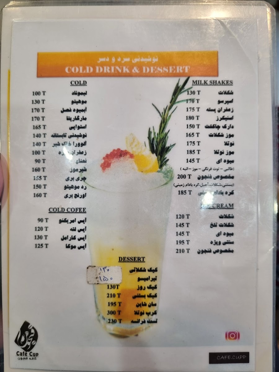 Cafe Cupp offers a menu that, while slightly on the pricier side, is celebrated for the quality of its offerings. One customer, Amin Samimi, noted that although prices may be higher than average, the quality of the orders makes it worthwhile. For a truly memorable experience, don’t miss out on their famed cheesy fries, as recommended by Reza Kahkesh—an absolute must-try that adds a tasty twist to your café visit!
